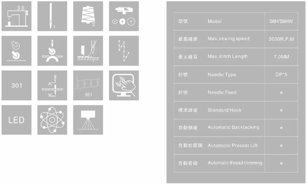 - Add the electronic backstitch switch and retain themanual backstitch to make it more convenient forthe operator.