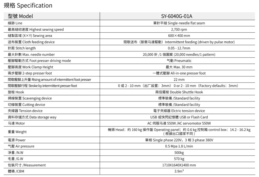 SY-6040G-01A 電子花樣機 Electronic Pattern Sewing Machine