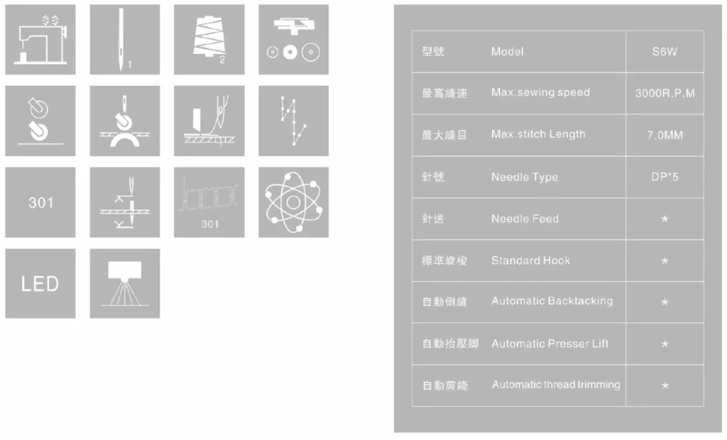 - Short thread cutting (about 1.0cm),reducingmanual trimming time Optional: Special Short-thread-device .only about 3mm long.